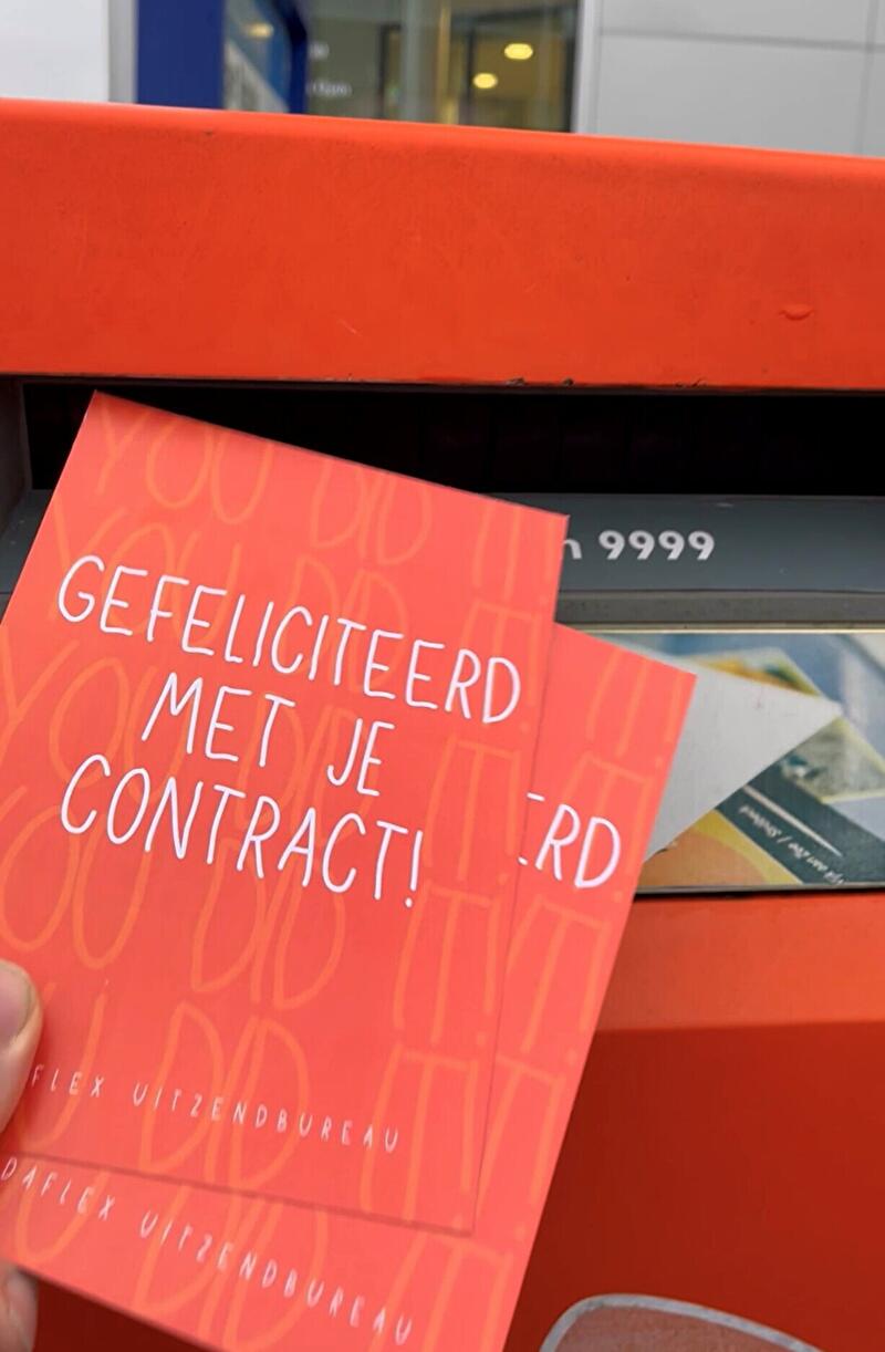 Ook toe aan een nieuwe uitdaging? Neem snel contact met ons op en ontdek de mogelijkheden die wij bieden voor het vinden van jouw droombaan. Wie weet ontvang jij binnenkort ook zo'n felicitatiekaartje in je brievenbus!