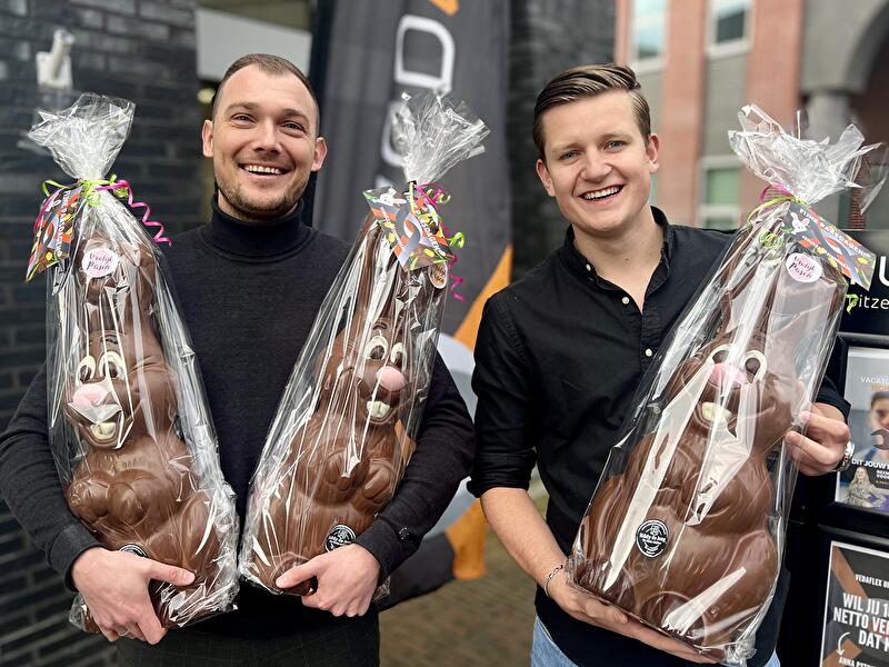 Het hele team, Friesland, Groningen en Drenthe, is deze week op pad met de heerlijke chocolade paashazen van Echte Bakker Eddy de Jong.