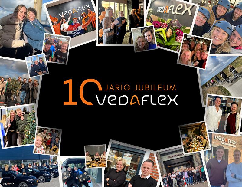 Hoera! In de maand mei vieren we het 10-jarig jubileum van Vedaflex! Een prachtige mijlpaal die wij morgen samen met het hele team uitbundig gaan vieren tijdens ons bedrijfsuitje in Giethoorn.